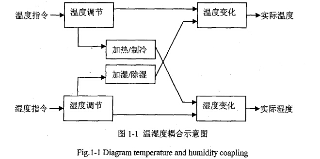 培養(yǎng)箱內(nèi)部氣流循環(huán)控制流程為:培養(yǎng)箱上電后,循環(huán)風(fēng)機(jī)就開始運(yùn)行,循環(huán)風(fēng)機(jī)使箱體內(nèi)的氣流不停的流動(dòng),使箱體中的氣流**終達(dá)到相同的溫度和濕度。但培養(yǎng)箱是一種非線性禍合滯后系統(tǒng),控制很容易超調(diào),且溫濕度超過設(shè)定值后很難降下來。培養(yǎng)箱溫濕度藕合模型簡圖如圖1一1所示。目前復(fù)雜非線性藕合及滯后系統(tǒng)完善有效控制策略的缺乏,導(dǎo)致這類系統(tǒng)的實(shí)時(shí)有效控制存在很大困難,常規(guī)的控制方法通常很難達(dá)到要求,無法為生命科學(xué)實(shí)驗(yàn)提供穩(wěn)定可靠的環(huán)境條件。