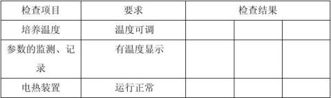6.2.3.2測驗手法:在完結(jié)設(shè)備的IQ后,查看培育箱各項操作預(yù)備作業(yè)安排妥當(dāng),按設(shè)備的規(guī)范操作規(guī)程空車運轉(zhuǎn),對下表所列項目進(jìn)行查看,并將查看成果填入下表,接連三次。