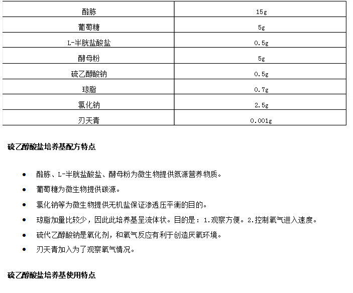 硫乙醇酸鹽培養(yǎng)基配方