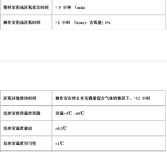(2) 溫度均勻度 ≤±1 ℃培養(yǎng)室溫度范圍 室溫+3℃**60℃。 (3) 溫度波動度 ≤±0.3 ℃ (4) 厭氧等級 含氧量≤1%