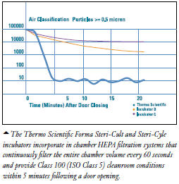 許多直接熱培養(yǎng)箱現(xiàn)在提供了一個(gè)運(yùn)行一夜的高熱凈化循環(huán)。這些過(guò)程旨在消除移除,單獨(dú)的高壓滅菌,以及重新組裝貨架和其他培養(yǎng)箱部件的需要。